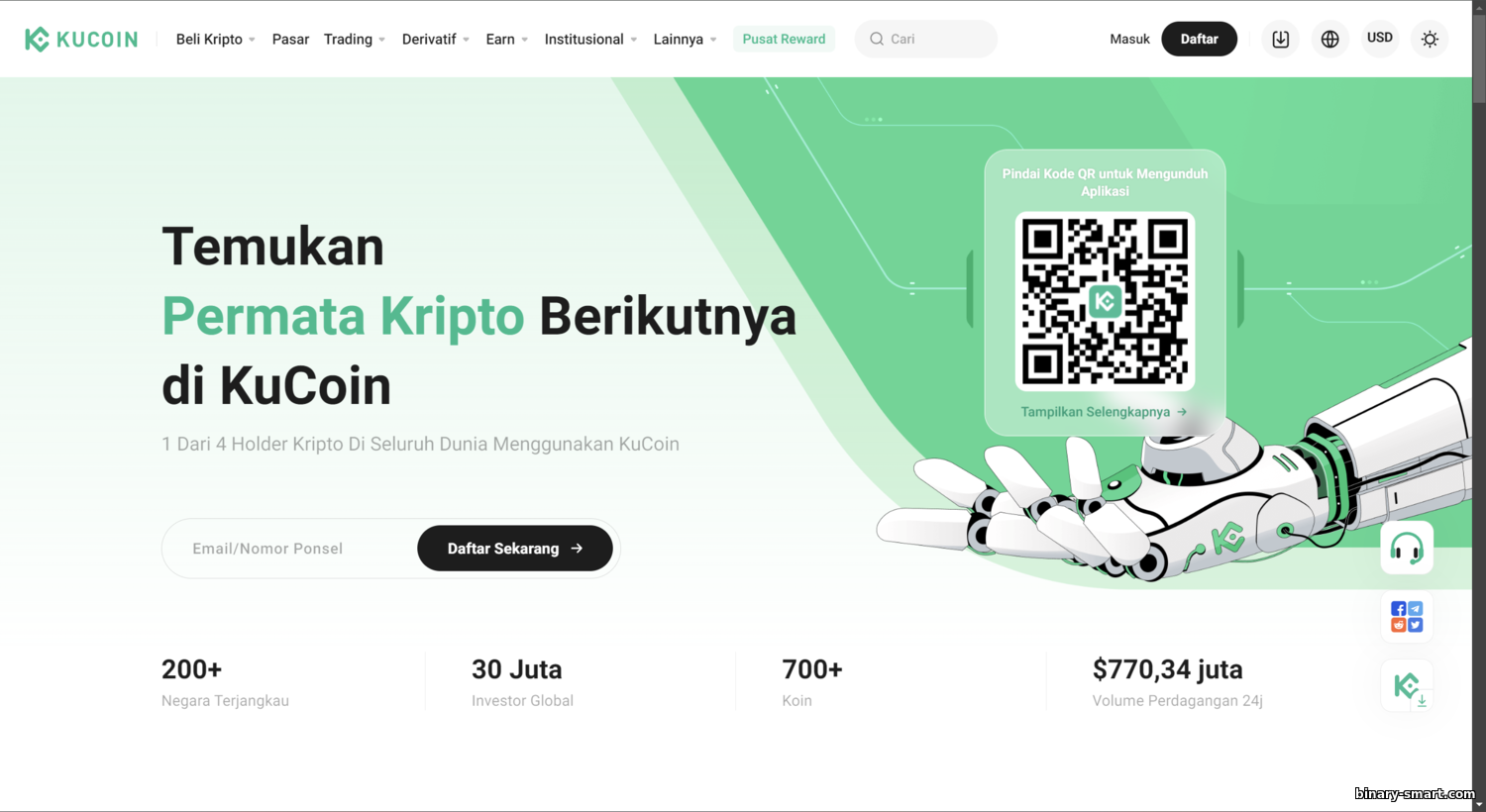 | KuCoin | 0,1% / 0,1% (0,08% dgn KCS) | Futures hingga 100x | 700+ | ~$1B (top-5) | Sebagian (perlu utk penarikan) |