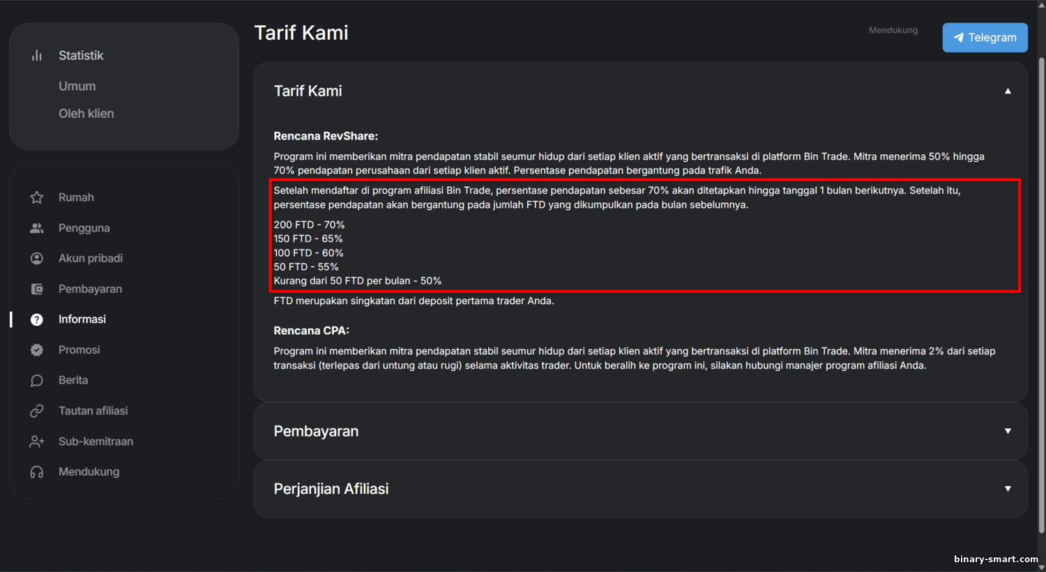 - Ketentuan program afiliasi BinTrade