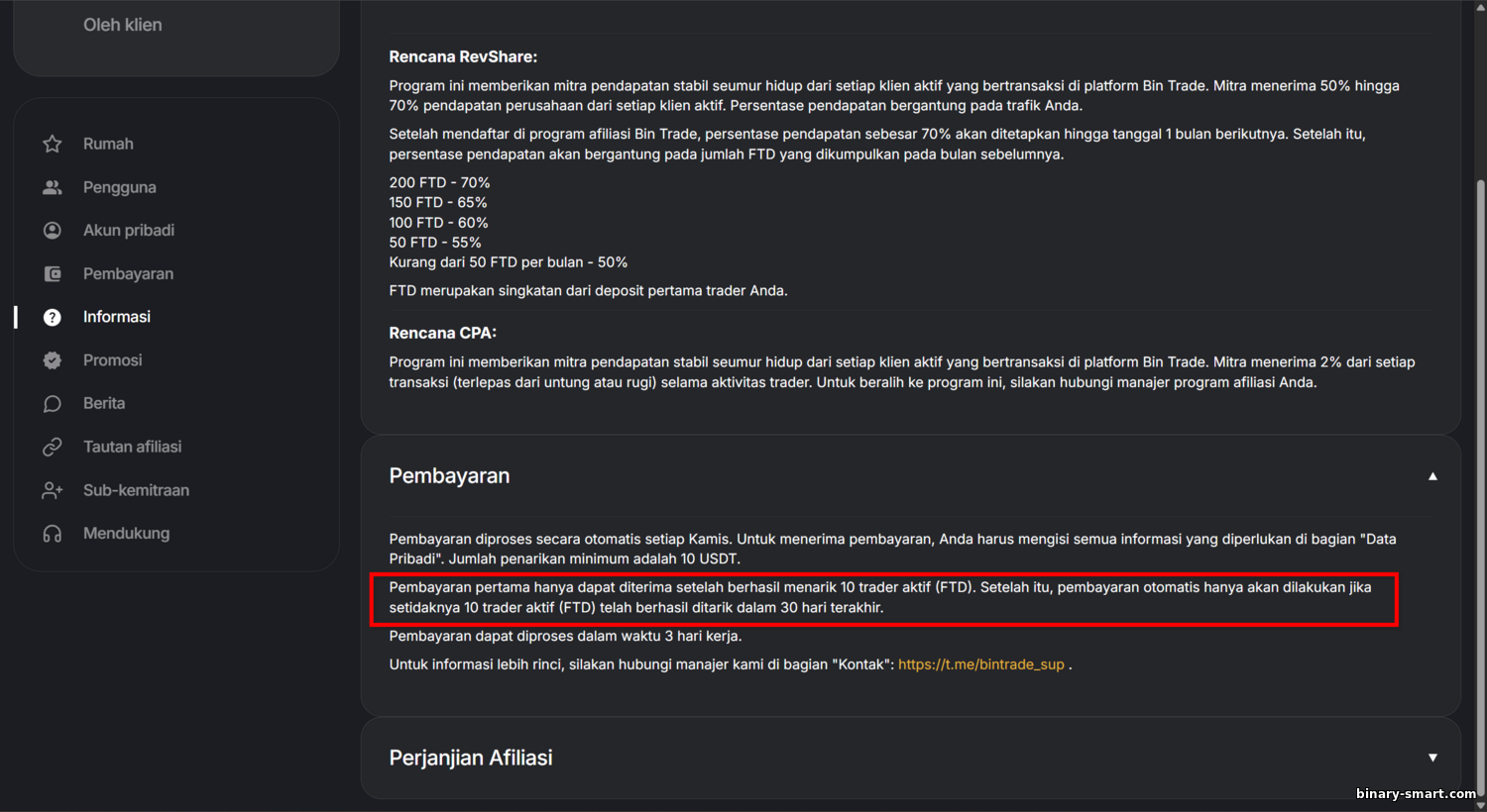 Ketentuan program afiliasi BinTrade
