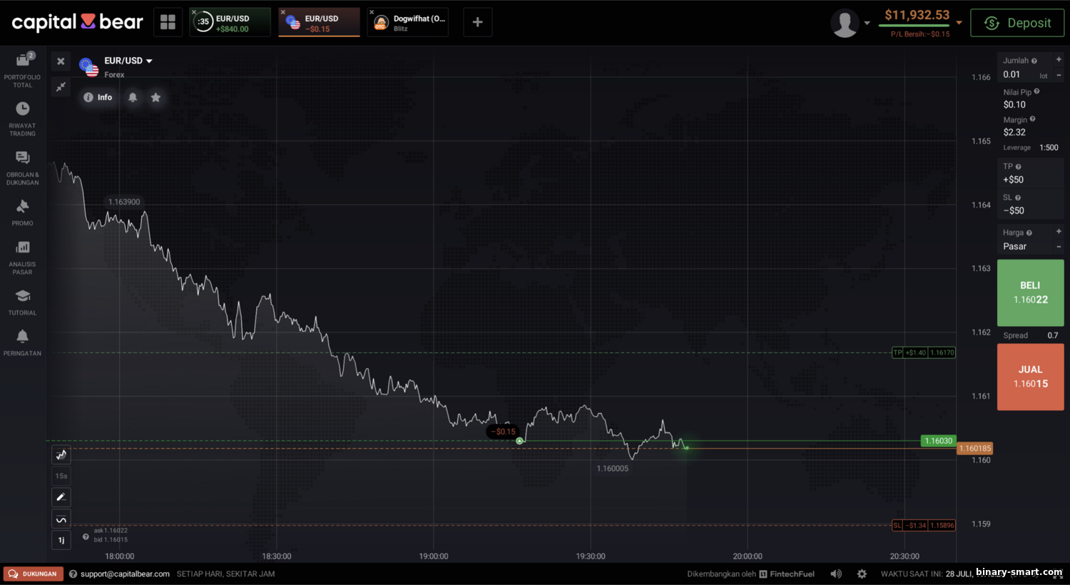 - Tidak mendukung trading algoritmik: Terminal kustom biasanya tidak memiliki konektivitas EA, algoritma, atau indikator khusus yang lazim di MT4/MT5. Bagi trader mahir ini kerugian: robot favorit dan skrip otomatis takkan jalan. Mungkin Capital Bear tak peduli—targetnya terutama non-profesional. Bagi perusahaan, ketiadaan API justru keuntungan: tidak ada pemantauan luar.