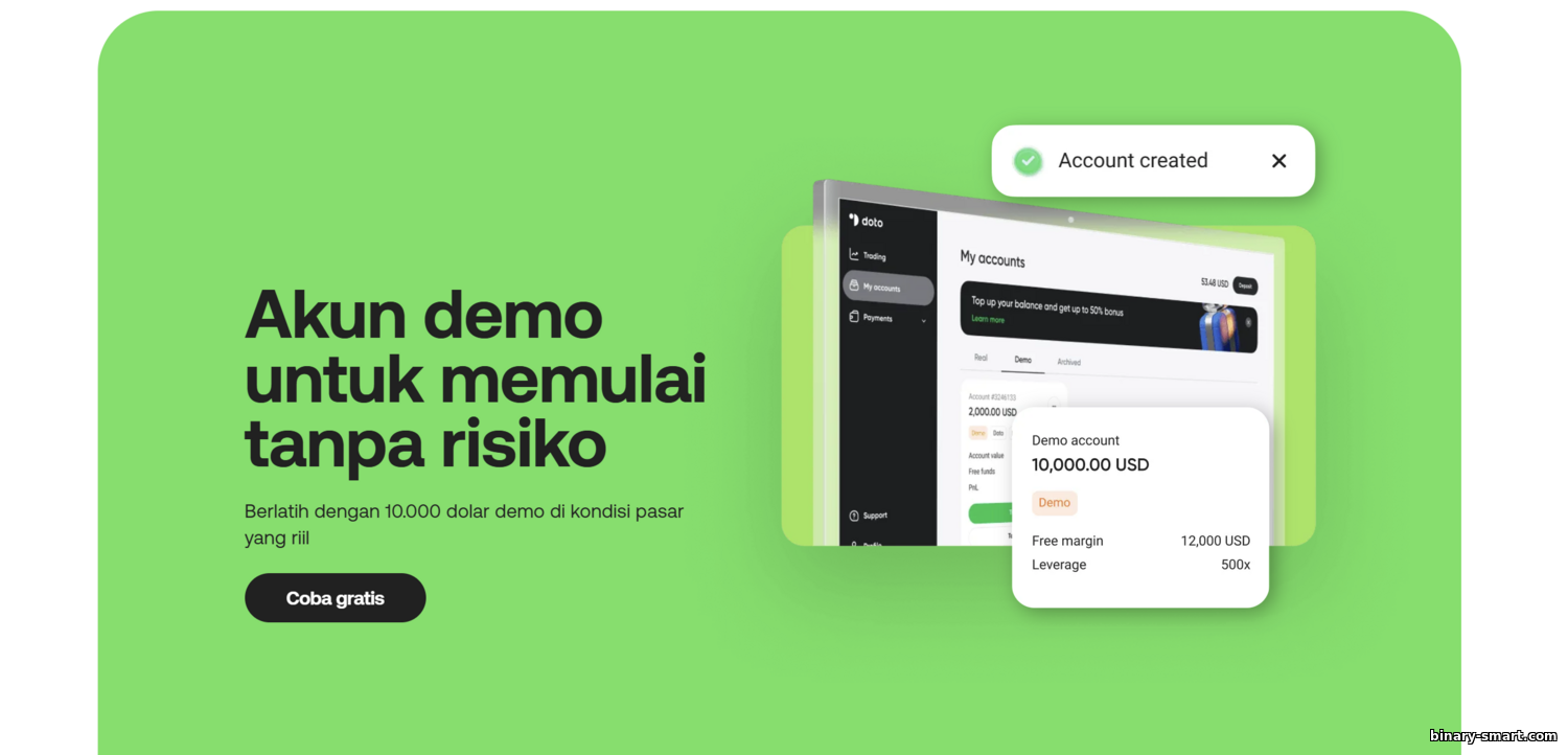 - Jenis akun apa yang ditawarkan Doto dan bagaimana cara membukanya?