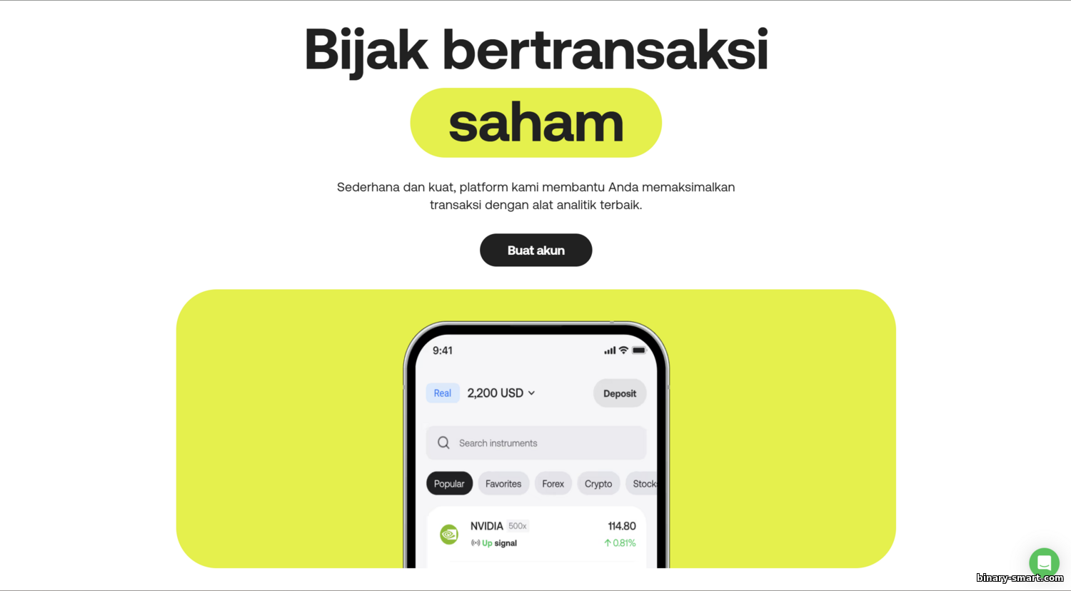 - Antarmuka intuitif. Saat pertama kali masuk, tutorial singkat memandu Anda membuka posisi dan menetapkan stop-loss serta take-profit. Tata letaknya bersih: grafik berada di tengah, tombol Beli/Jual dan kolom volume tepat di bawahnya—mudah terlihat. Seorang trader yang terbiasa dengan terminal penuh menu mengatakan ia “terkejut karena semuanya begitu bersih”, lalu memutuskan bahwa kesederhanaan adalah nilai tambah. Tidak ada yang mengalihkan perhatian dari trading dan platform memberikan akses pasar tanpa gangguan.