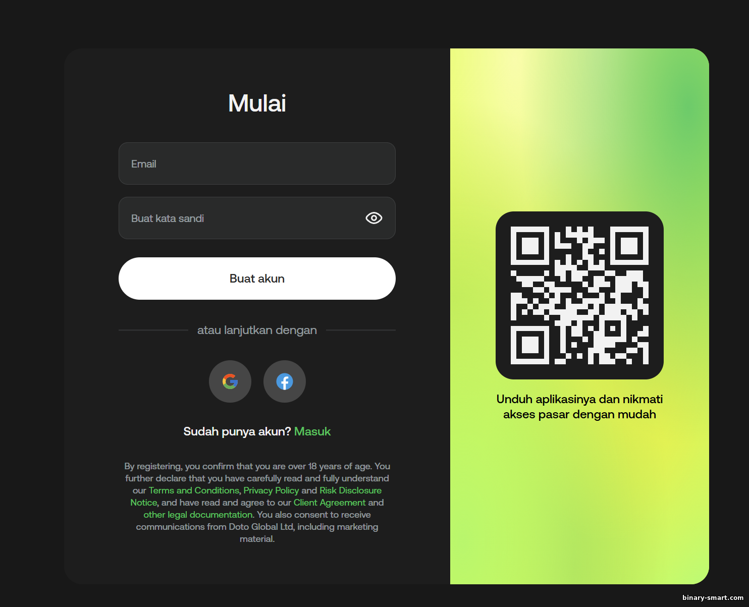 - Smartphone atau tablet lewat aplikasi native Doto (Android, iPhone/iPad) dan aplikasi MetaTrader 4/5. Terminal web Doto juga responsif di perangkat mobile, meski layar kecil kurang nyaman dibanding aplikasi.