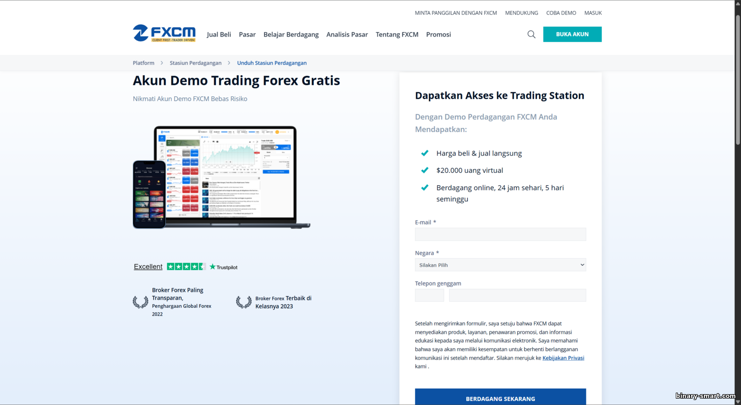 - Akun demo FXCM — cara gratis untuk mencoba platform dan kondisi. Buka demo di situs, dapatkan saldo virtual (umumnya $50.000) dan trading simulasi pasar live. Demo awalnya tidak dibatasi waktu, tetapi akun yang tidak aktif 30+ hari dapat dinonaktifkan — Anda selalu bisa buka yang baru.
