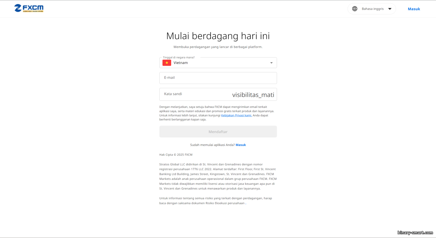 - Untuk klien internasional di luar zona regulasi ketat, terdapat entitas lepas pantai FXCM Markets (terdaftar di Saint Vincent and the Grenadines). Ini memungkinkan trader dari berbagai negara (jika hukum lokal mengizinkan) membuka akun dengan syarat lebih fleksibel, seperti leverage lebih tinggi.