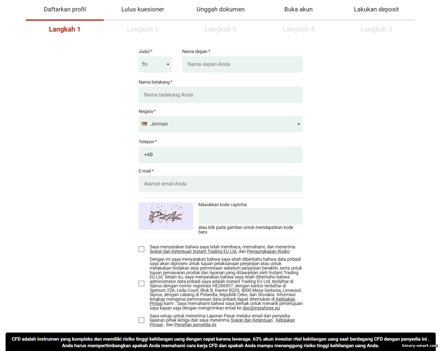 | Dukungan pelanggan | Dukungan multibahasa 24/7 (Rusia, Inggris, dll.). Kanal: live chat situs, email, telepon, messenger. Verifikasi ID diperlukan untuk penarikan (Anda bisa mulai trading sebelum itu). |