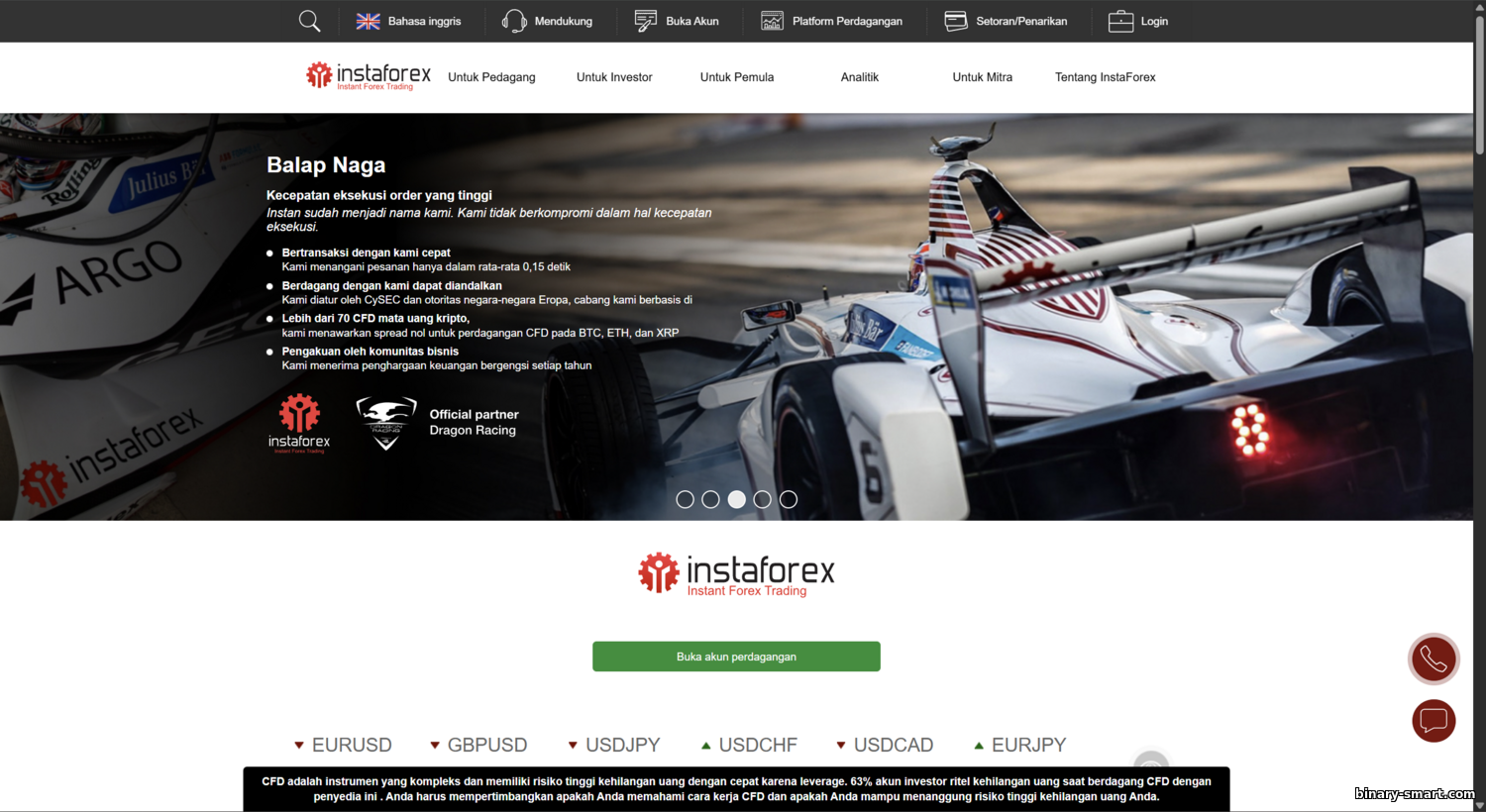 Instaforex adalah broker forex internasional yang diluncurkan pada 2007 oleh grup perusahaan InstaFintech. Selama bertahun‑tahun, perusahaan ini menarik jutaan klien di seluruh dunia—mereka mengklaim lebih dari 7.000.000 trader dari berbagai negara. Broker ini sangat aktif di Eropa dan Asia: Instaforex memiliki kantor di 260 kota, banyak di antaranya di negara‑negara Asia. Di Rusia, kantor pusat berada di Kaliningrad, dengan kantor perwakilan dan mitra di seluruh CIS, Eropa, dan Asia. Instaforex dikenal dengan promosi agresif: menjadi sponsor resmi Liverpool FC dan tim reli Loprais, sementara duta mereknya mencakup bintang olahraga seperti legenda biathlon Ole Einar Bjørndalen. Broker ini telah meraih banyak penghargaan industri, termasuk dari CNBC Business Magazine dan European CEO, dan kerap disebut sebagai “Best Broker in Asia.”