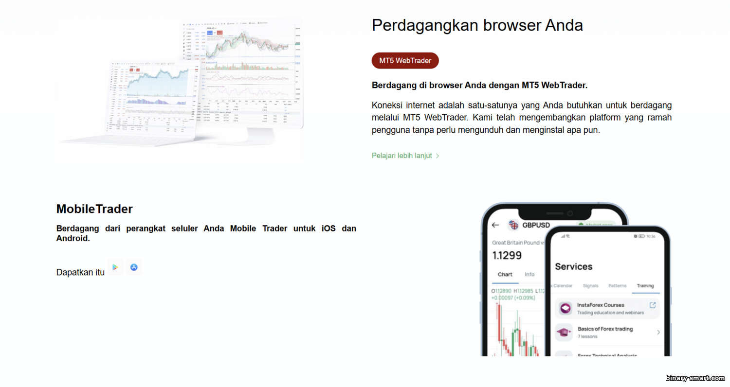 | Edukasi & analitik | Materi belajar gratis (artikel, video, e‑book); analisis harian dan berita forex; kanal Forex TV; kalender ekonomi, kalkulator, sinyal trading. Webinar klien diadakan. |