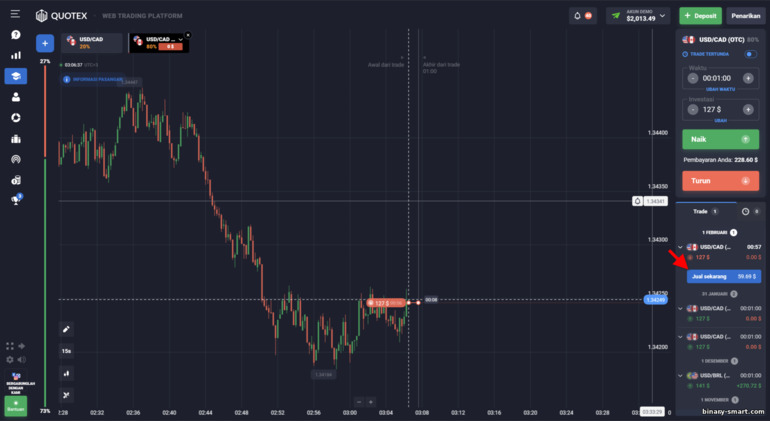 Ikuti panduan ini agar akrab dengan Quotex dan mulai bertransaksi opsi biner. Antarmuka mudah digunakan, eksekusi order hanya perlu beberapa klik. Kuncinya: menggabungkan kemudahan tersebut dengan pendekatan rasional dan disiplin. Trading di Quotex dapat menguntungkan jika Anda tetap sistematis dan selalu mengambil pelajaran dari hasil sebelumnya.
