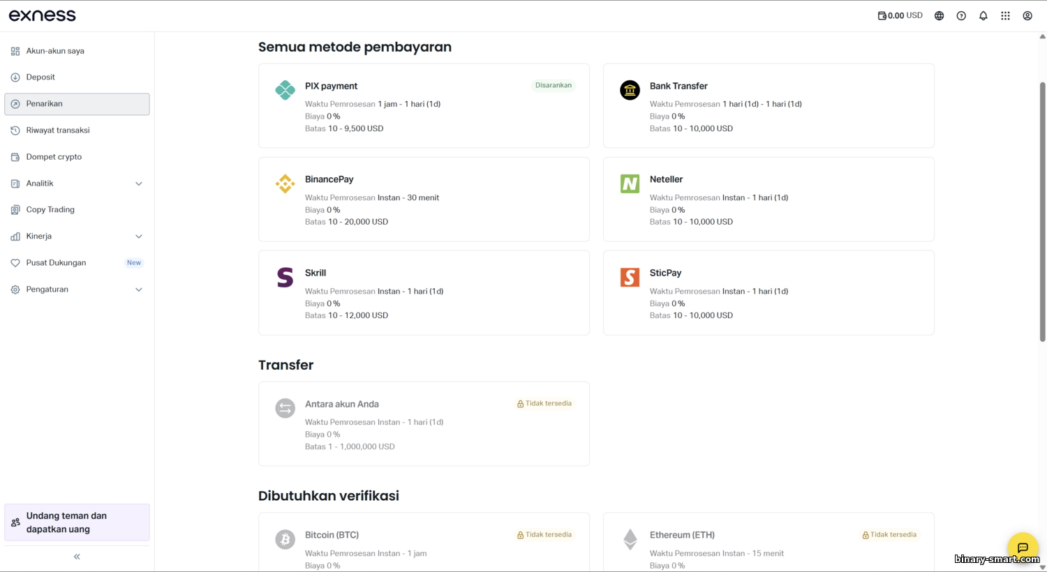 - Deposit/penarikan cepat: penarikan profit instan 24/7 — dana ke e‑wallet tiba dalam hitungan menit, siang atau malam. Exness mengotomatiskan pemrosesan pembayaran, yang jarang dimiliki pesaing.