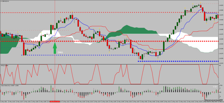 Strategi opsi biner, Forex dan CFD - Tambang Emas 2 Menit - strategi mengikuti tren berdasarkan penembusan level support dan resistance, memungkinkan Anda menemukan titik pembukaan order.