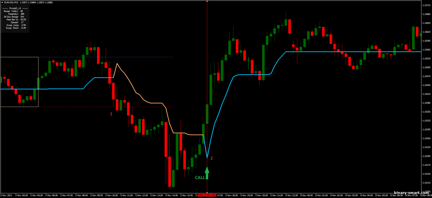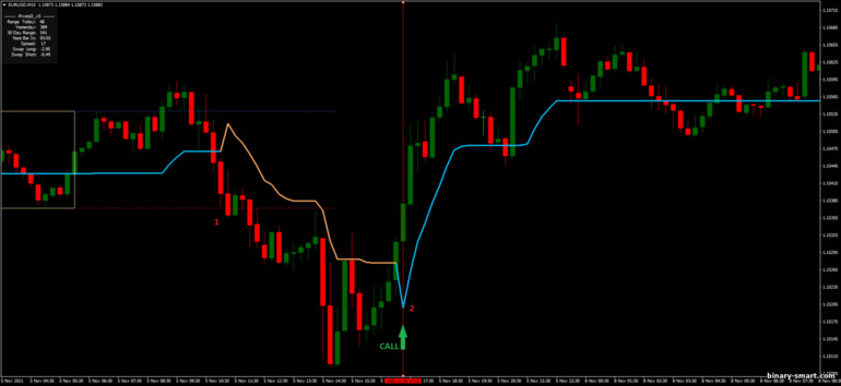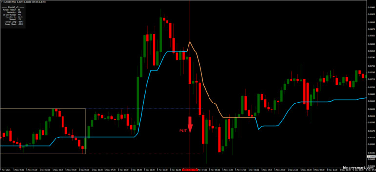 - Rata-rata pergerakan turun di bawah persegi panjang dan kemudian berubah menjadi biru (ini seharusnya terjadi sekali)