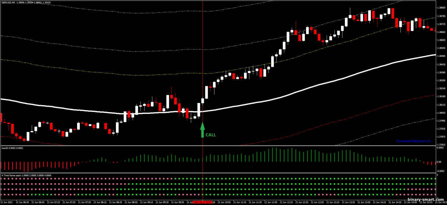 Strategi untuk opsi biner, Forex dan CFD - Strategi Envelope Breakout - strategi berdasarkan level support dan resistance yang dibangun berdasarkan rata-rata bergerak, memungkinkan Anda menemukan titik masuk ke dalam transaksi.