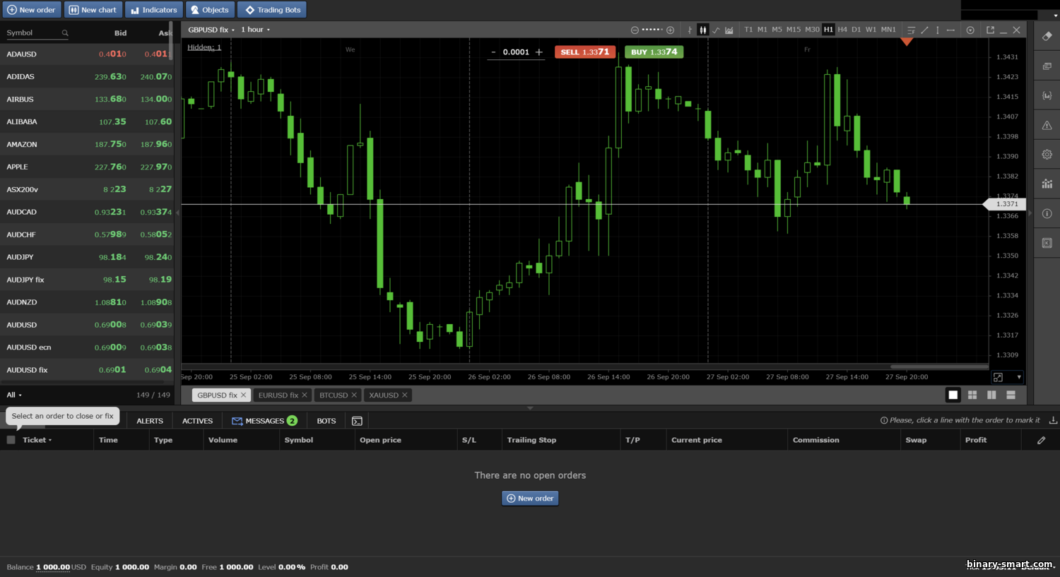 - Kemudahan penggunaan dan reka bentuk. Antara muka mudah difahami dalam 1–2 jam, dengan panduan terbina dalam (contohnya, arahan langkah demi langkah ketika membuka dagangan).