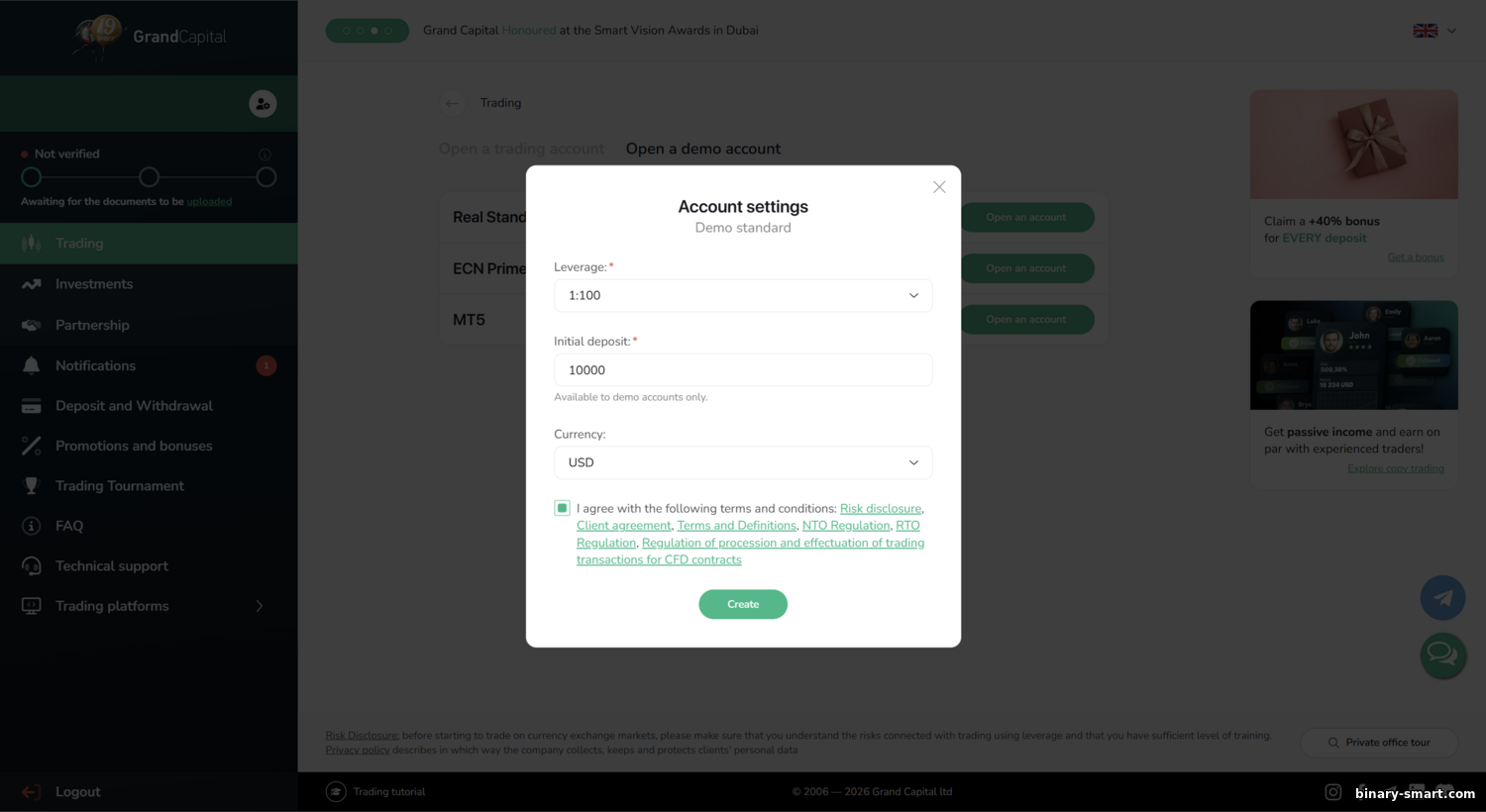 - Grand Capital – Veteran pasaran forex (beroperasi sejak 2006) dengan akar di Eropah Timur. Menawarkan pelbagai jenis akaun, termasuk akaun sen dan akaun ECN, serta platform klasik MetaTrader 4/5. Menonjol dengan gabungan forex/CFD bersama perkhidmatan lain: portfolio pelaburan, copy trading (LAMM), dan pertandingan pedagang. Regulasi: pada 2024 ia memperoleh lesen Mwali (Comoros) dan menjadi ahli Financial Commission dengan perlindungan sehingga €20,000. Walaupun Mwali tidak dianggap pengawal selia yang ketat (pada asasnya pendaftaran luar pesisir), keahlian Financial Commission menambah sedikit keyakinan. Grand Capital sesuai untuk mereka yang menghargai sejarah operasi panjang dan fleksibiliti. Sebelum anda bermula, semak: sama ada perkhidmatan tersedia di negara anda (broker menyatakan ia tidak beroperasi di beberapa rantau, termasuk AS, Rusia, EU, dll., mengikut terma mereka).