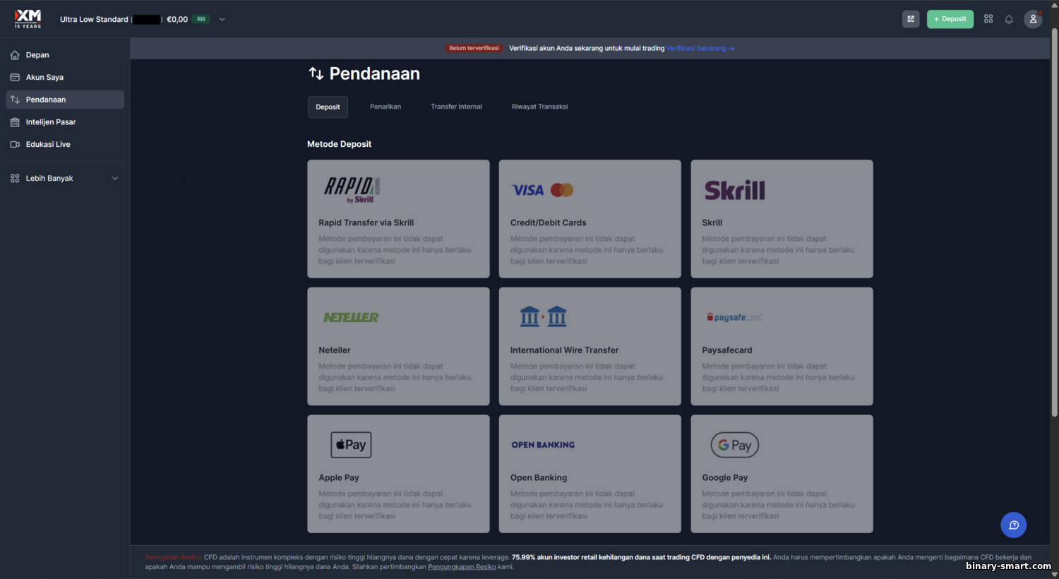 - Kripto — XM tidak menerima/menarik kripto; hanya fiat.